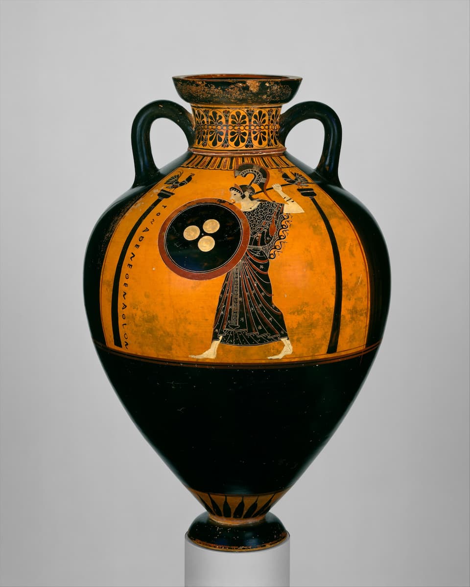 Panathénajská amfora na olivový olej je vysoká přes 60 cm a pojme zhruba 35 litrů oleje. Zdroj fotky: www.metmuseum.org